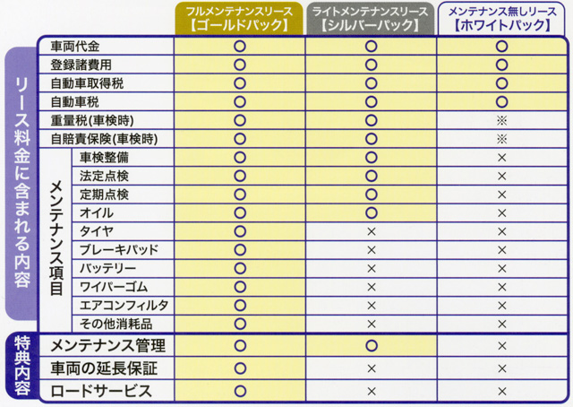 上記メンテナンス内容は、走行距離等の契約内容により、一部異なる場合がございます。